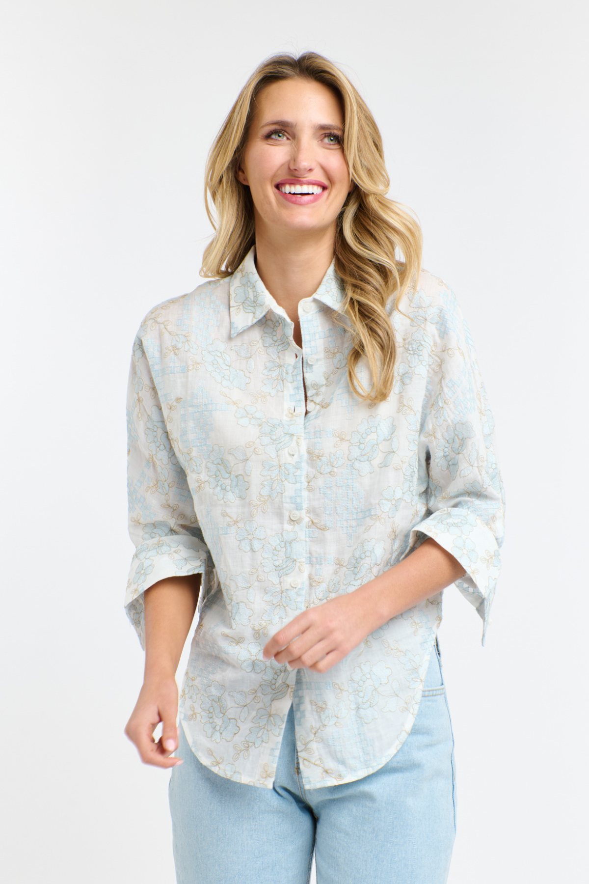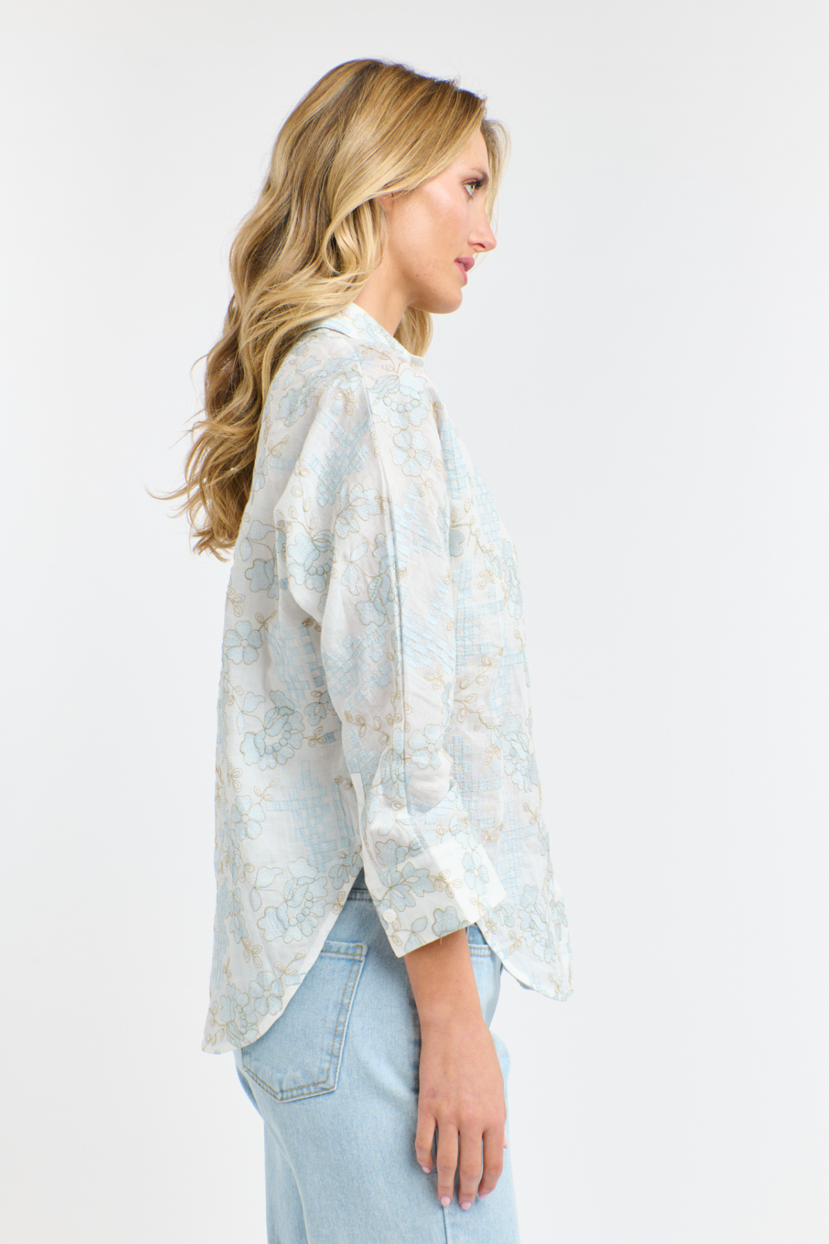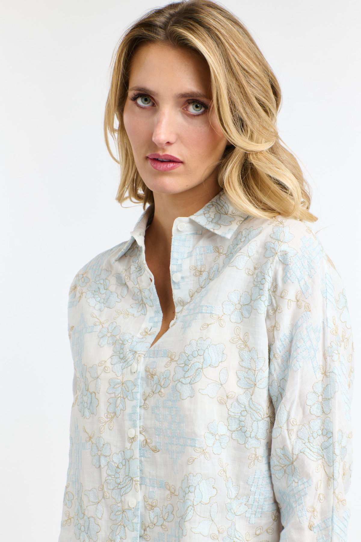 Say hello to Amelia a beautifully detailed 100% linen shirt from 365 Days that captures relaxed elegance at its best. Featuring delicate floral embroidery in soft shades of blue and natural tones, this shirt is a breath of fresh air. Lightweight, breezy, and effortlessly flattering, Amelia is the kind of piece you’ll reach for again and again.