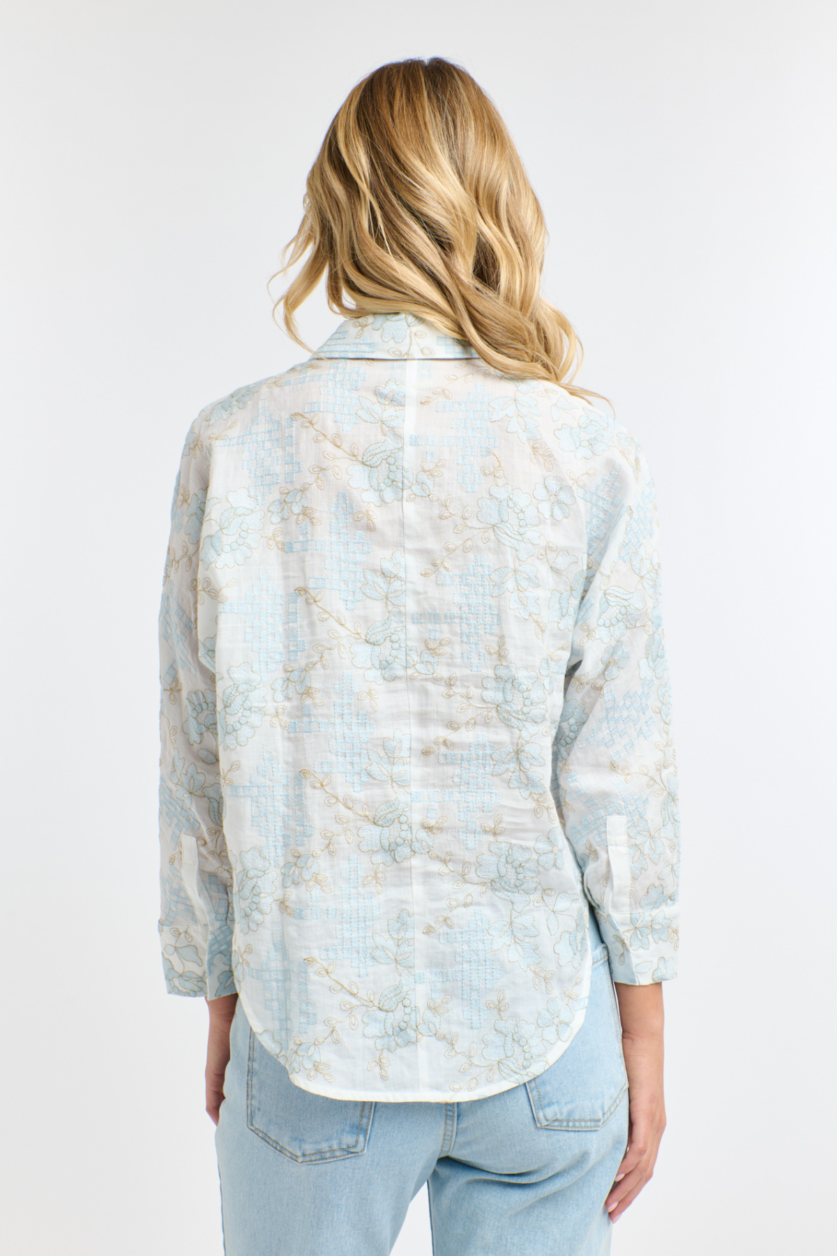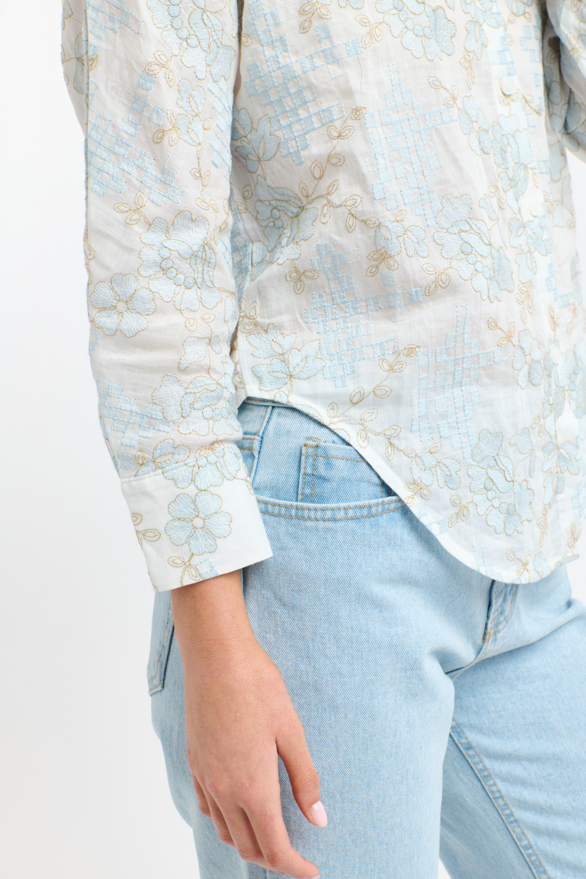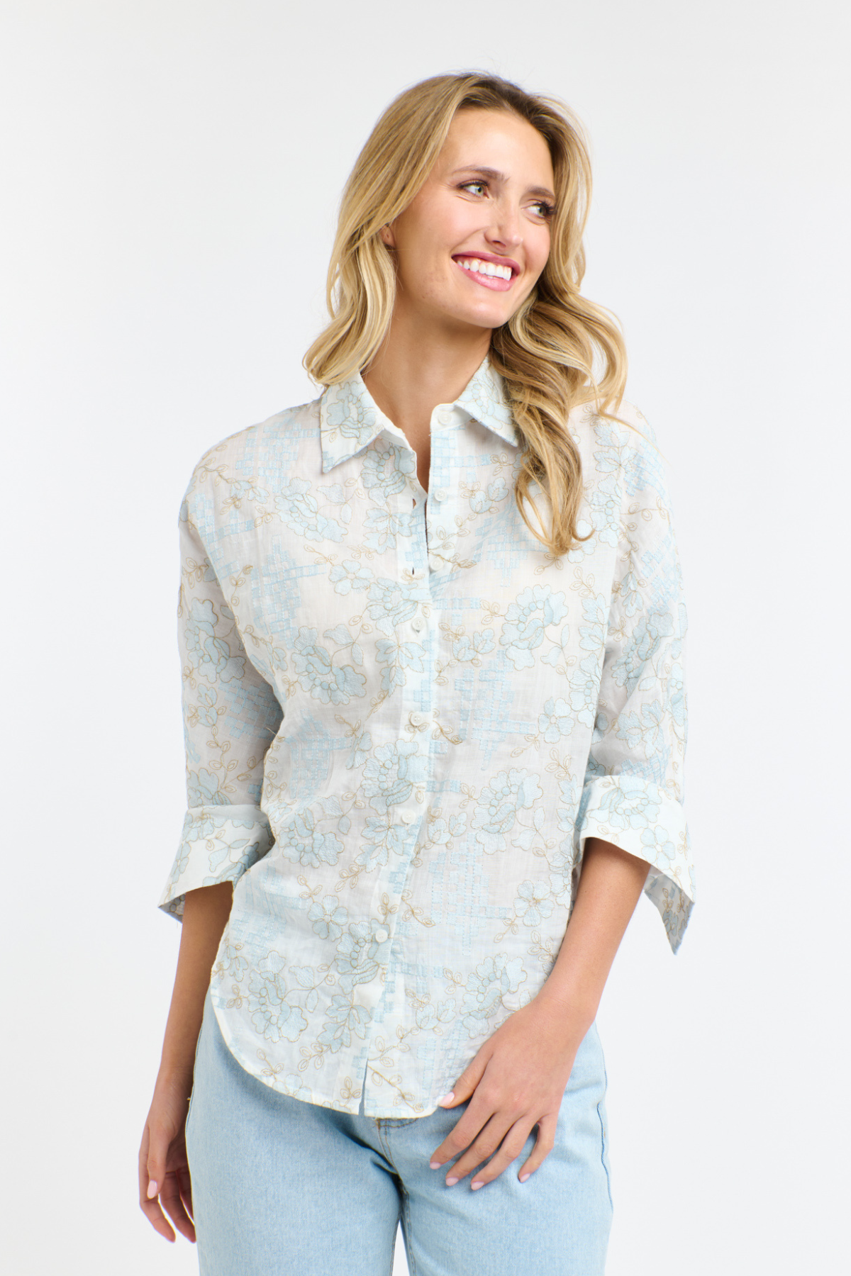 Say hello to Amelia a beautifully detailed 100% linen shirt from 365 Days that captures relaxed elegance at its best. Featuring delicate floral embroidery in soft shades of blue and natural tones, this shirt is a breath of fresh air. Lightweight, breezy, and effortlessly flattering, Amelia is the kind of piece you’ll reach for again and again.