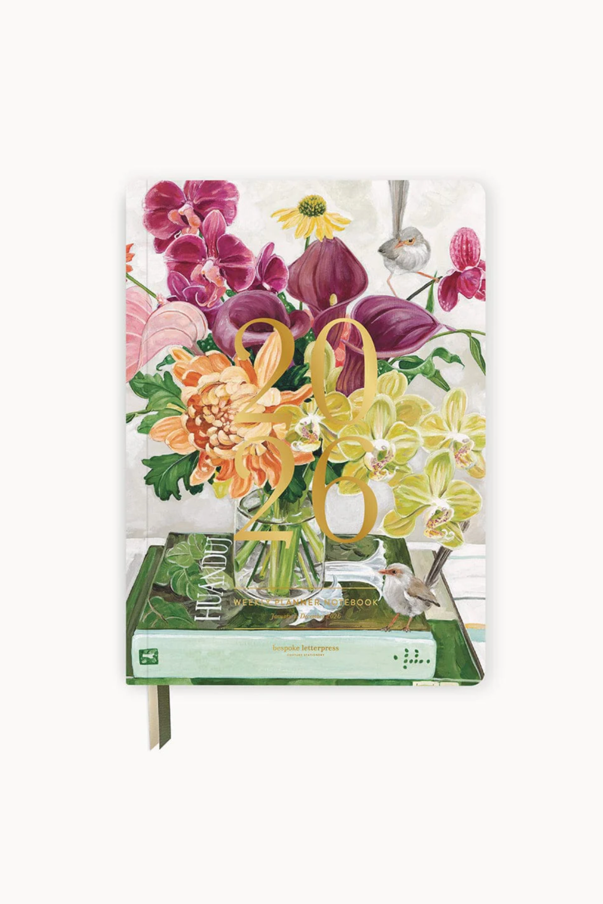 Featuring a stunning Fairy Wren print cover with gold foil detailing and gilded edges, it’s as elegant as it is functional. Inside, delicate artworks by Dominika Keller adorn both internal and external spreads, while two satin ribbon markers and a lay-flat binding make planning an effortless joy.