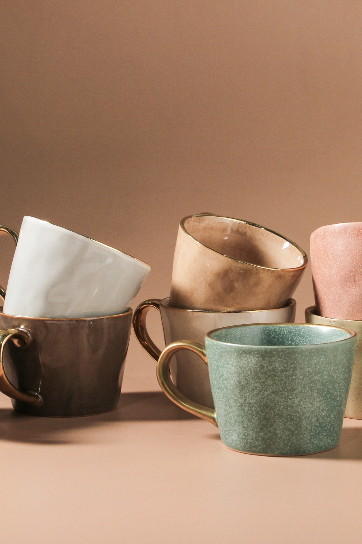 They have been handmade and glazed in a reactive glaze and gilded with gold around the rim and the handle. They are always a favourite and make the most perfect gift for someone you love.