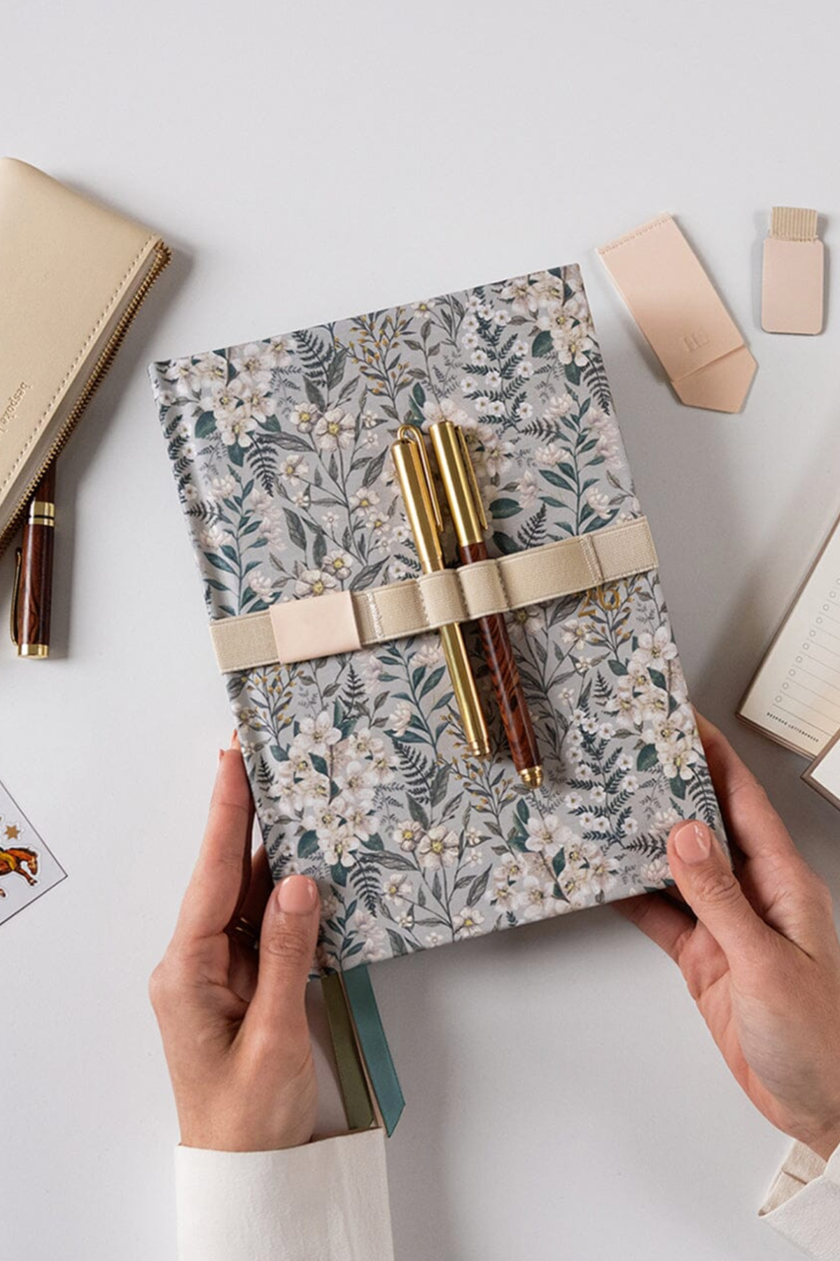 Pair your favourite pens with our Bespoke Letterpress Elastic Book Strap, the perfect blend of function and refinement. Designed to complement our linen-bound Journals and Planners, this elegant strap keeps your writing tools close while adding a polished finishing touch to your desk or handbag.