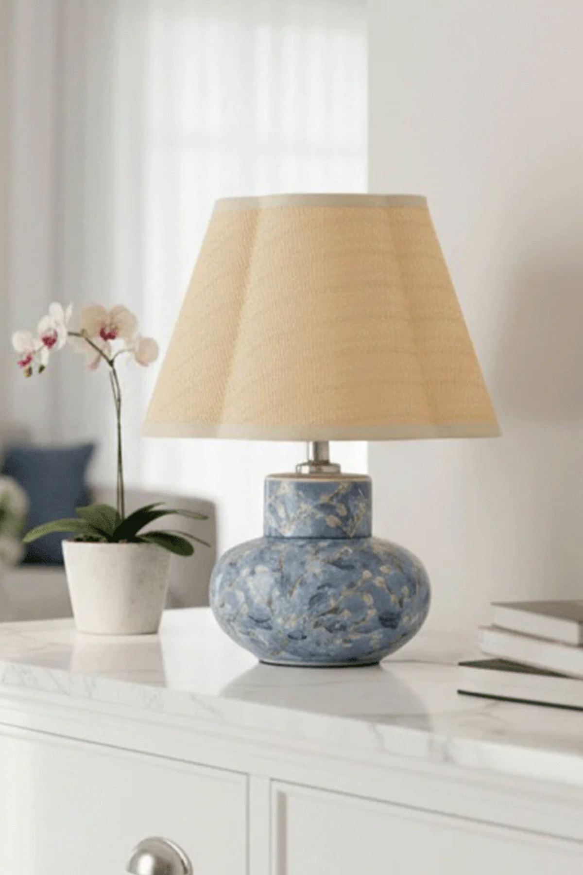Crafted with care from quality porcelain and a durable shade, this lamp offers the perfect balance of beauty and practicality—ideal for everyday living with a sophisticated edge.