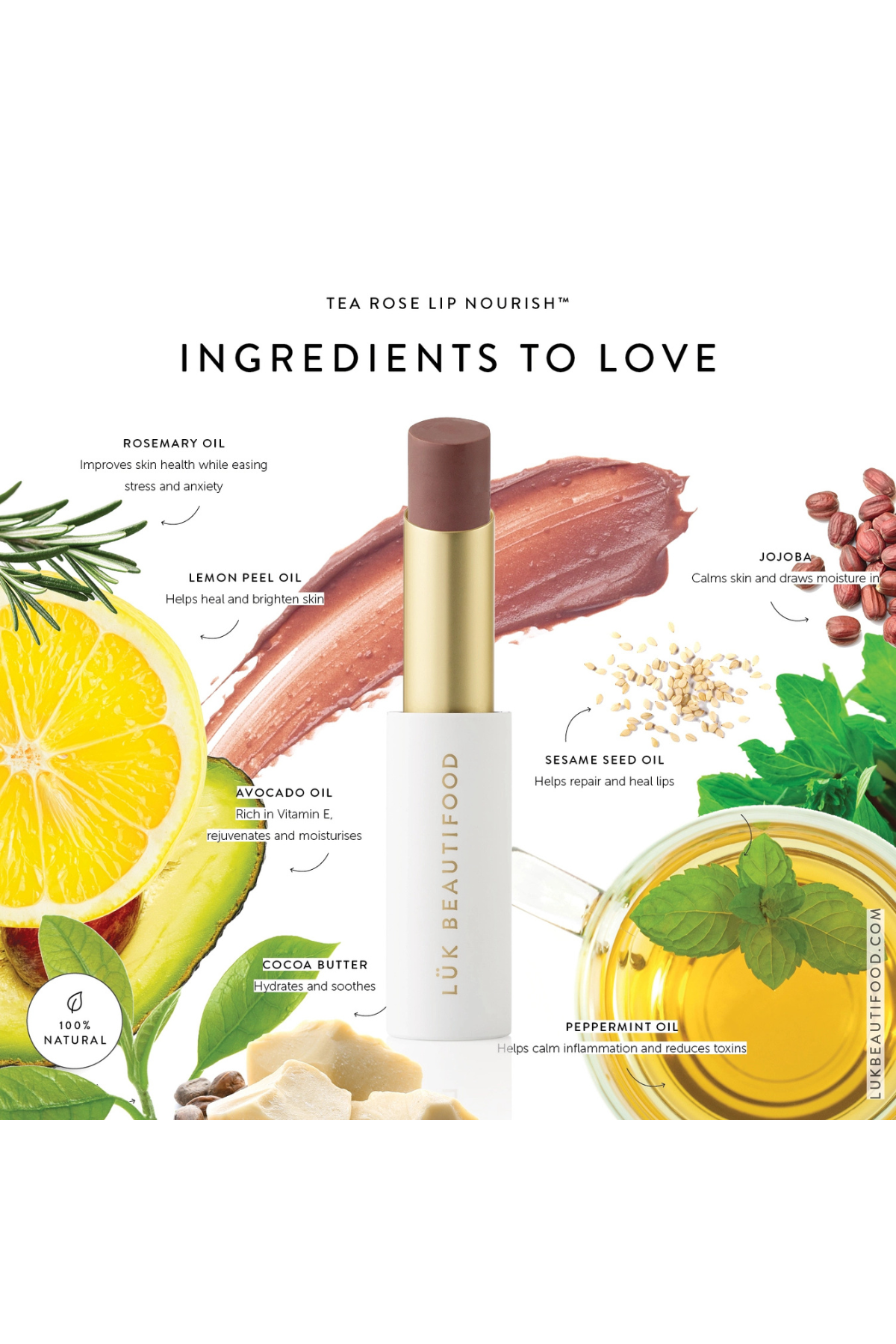 A synthetic-free, breathable balm–lipstick hybrid, Tea Rose nourishes the lips instantly and with ongoing care.