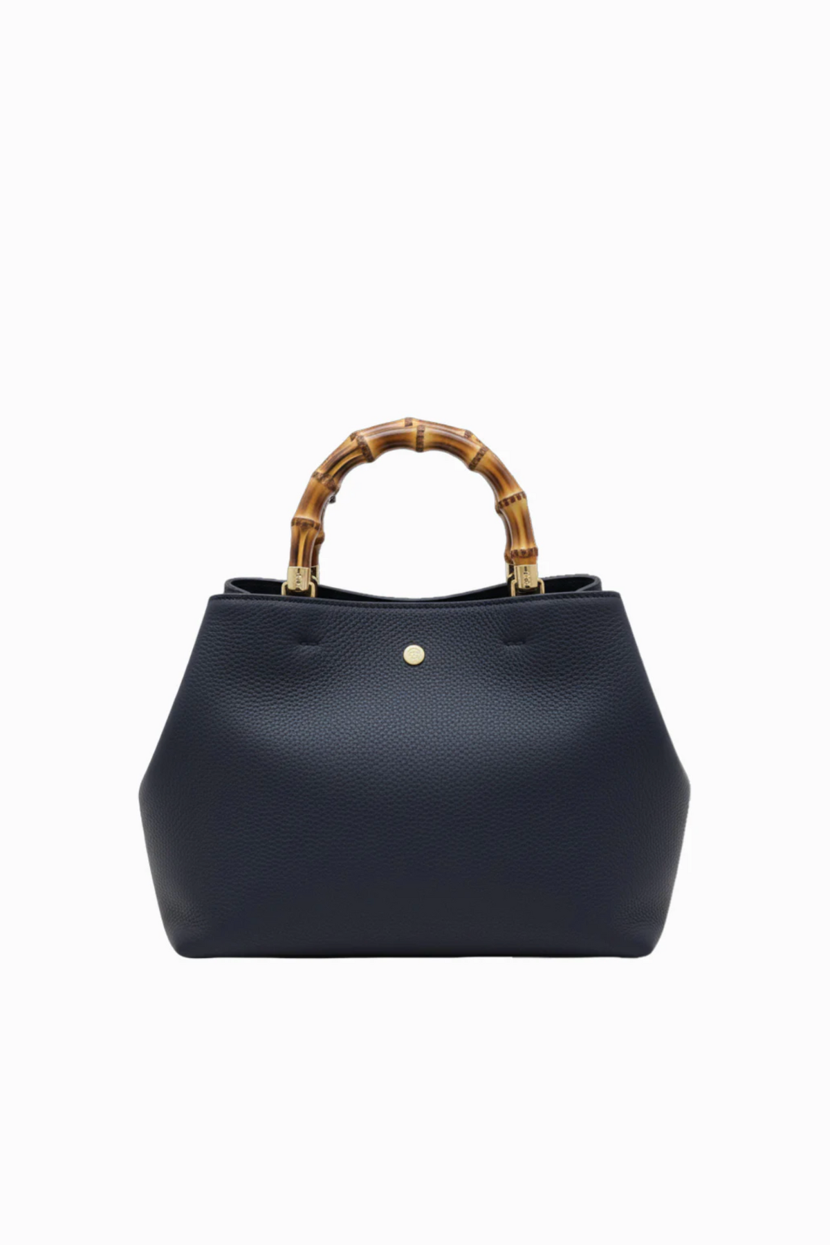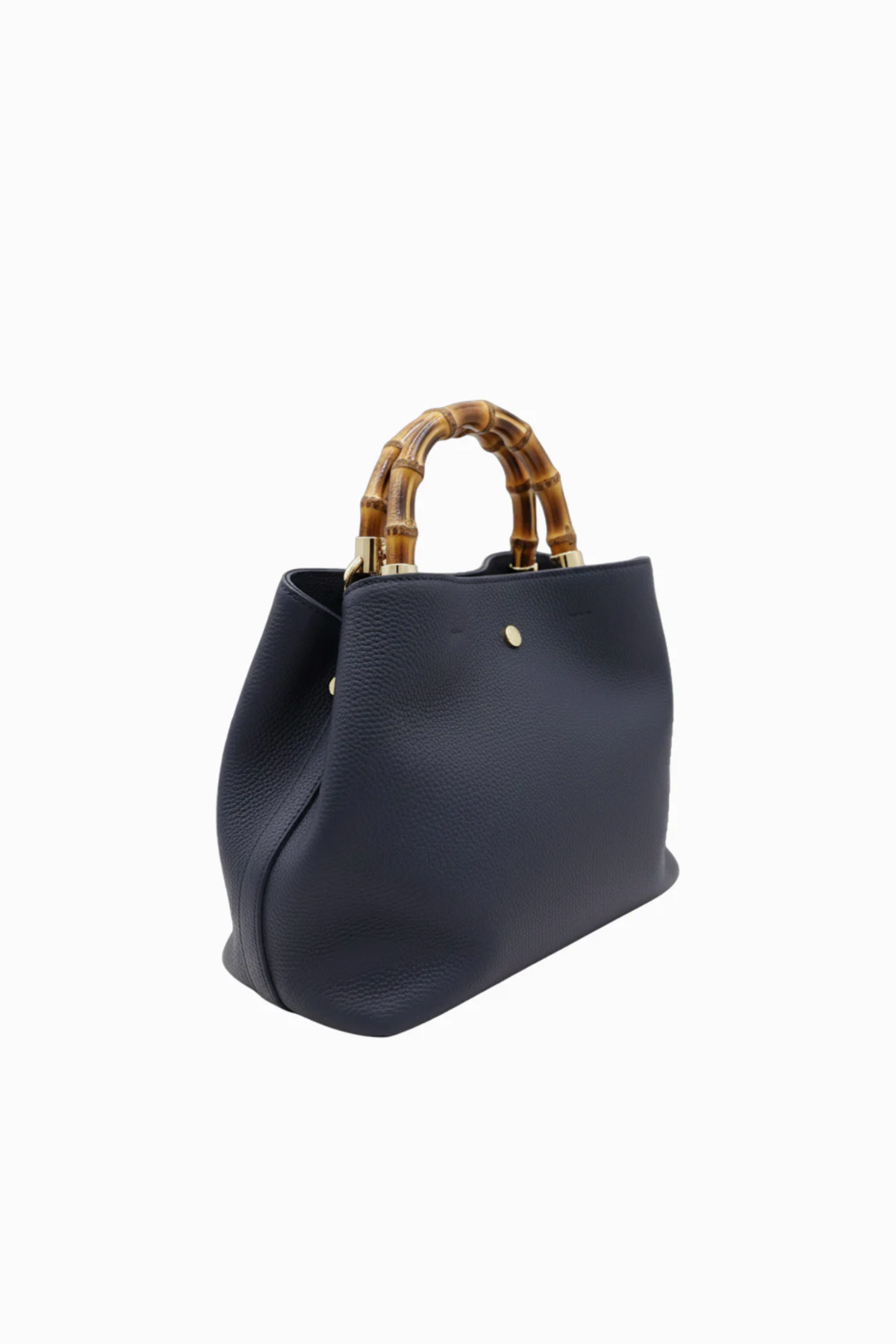 The Monroe Bag Navy is a must-have luxury handbag, designed for those who appreciate the perfect balance of elegance and style. Expertly crafted from premium leather, this sophisticated navy bag features distinctive bamboo handles, adding a touch of natural luxury.