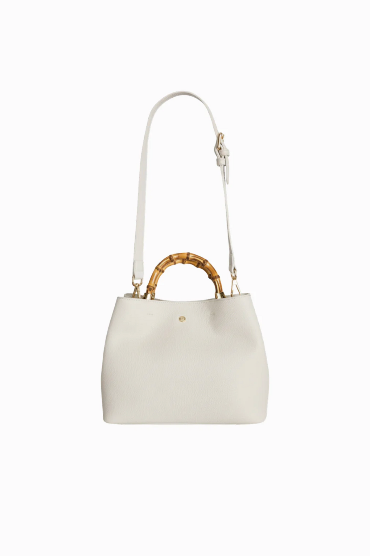 With a compact yet spacious interior and a removable strap, this bamboo and leather bag offers ample room for your essentials, while the internal zipper compartment keeps your belongings organised and secure. The luxurious gold hardware and soft lining elevate the refined look of this crossbody style, making it versatile for everyday wear and special evening events.