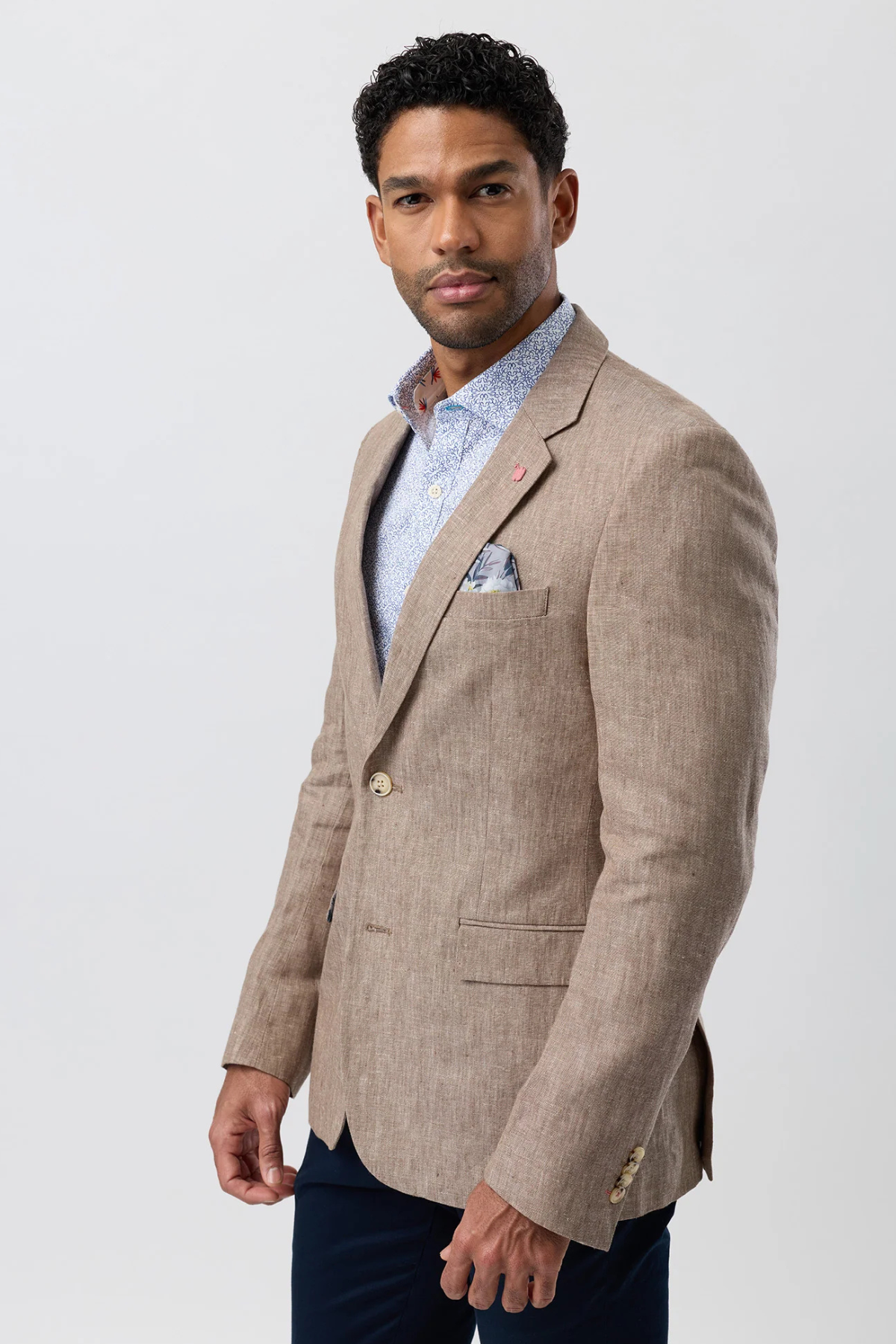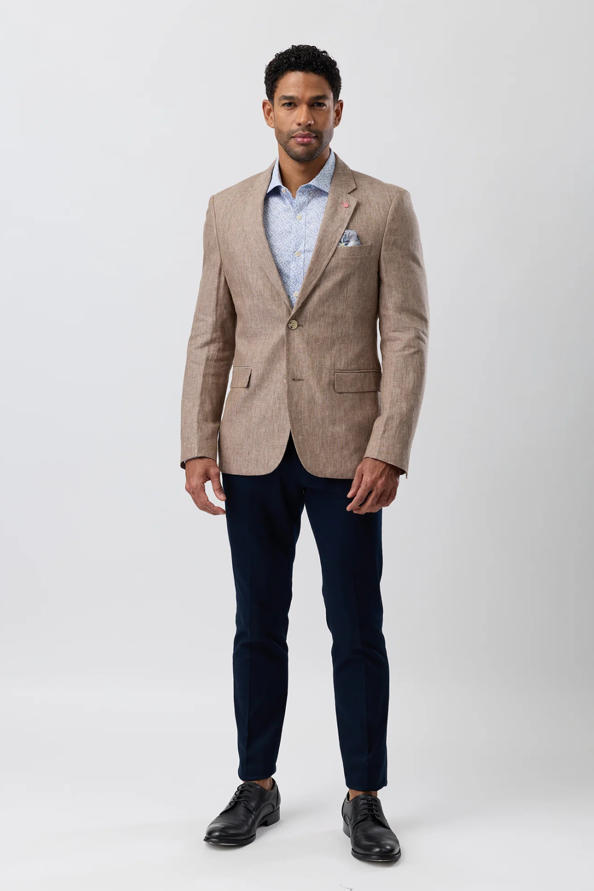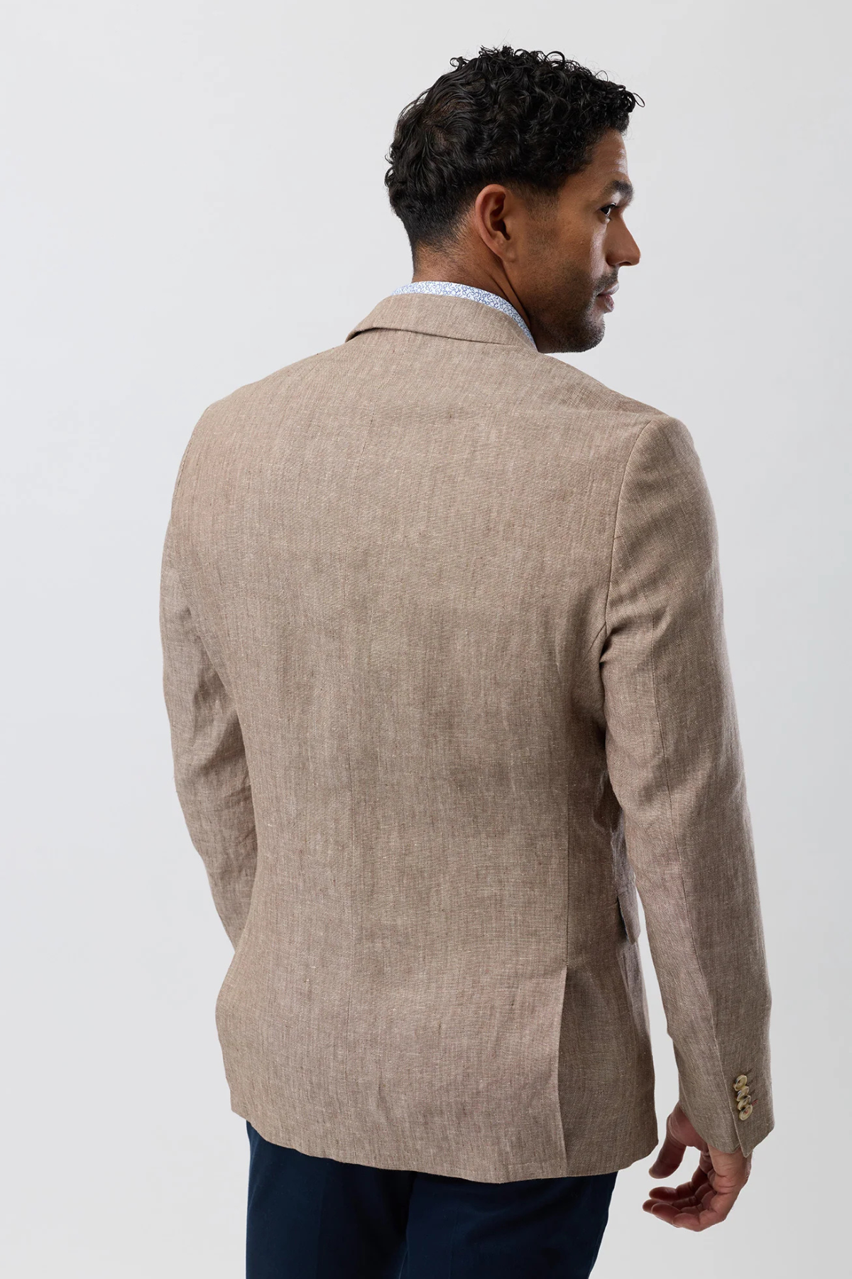 Pair with tailored trousers and leather shoes for formal occasions, or dress it down with chinos and loafers for relaxed summer style. The beige linen makes it an easy neutral for layering.