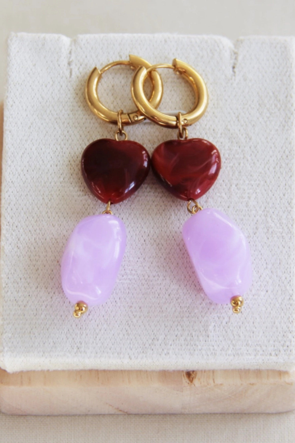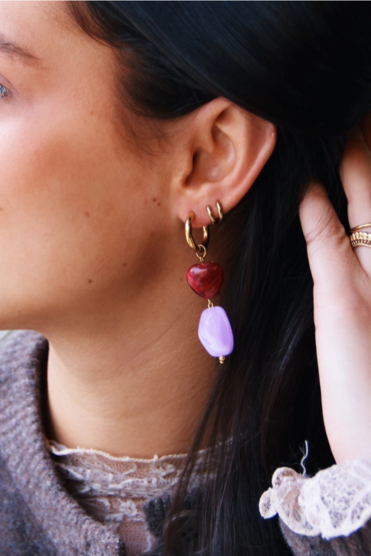 A delicate statement piece with a soft pop of colour, these hoop earrings feature a lilac heart charm that adds a fresh, feminine touch. Light-catching and easy to wear, they’re perfect for elevating everyday looks.