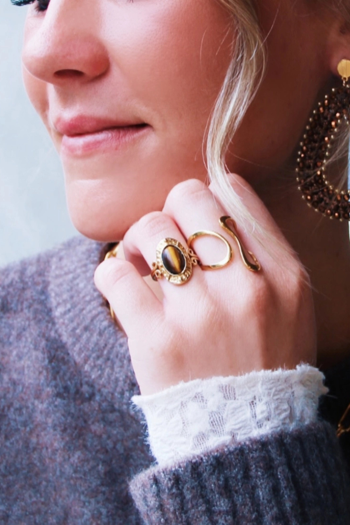 - Statement ring with oval brown stone