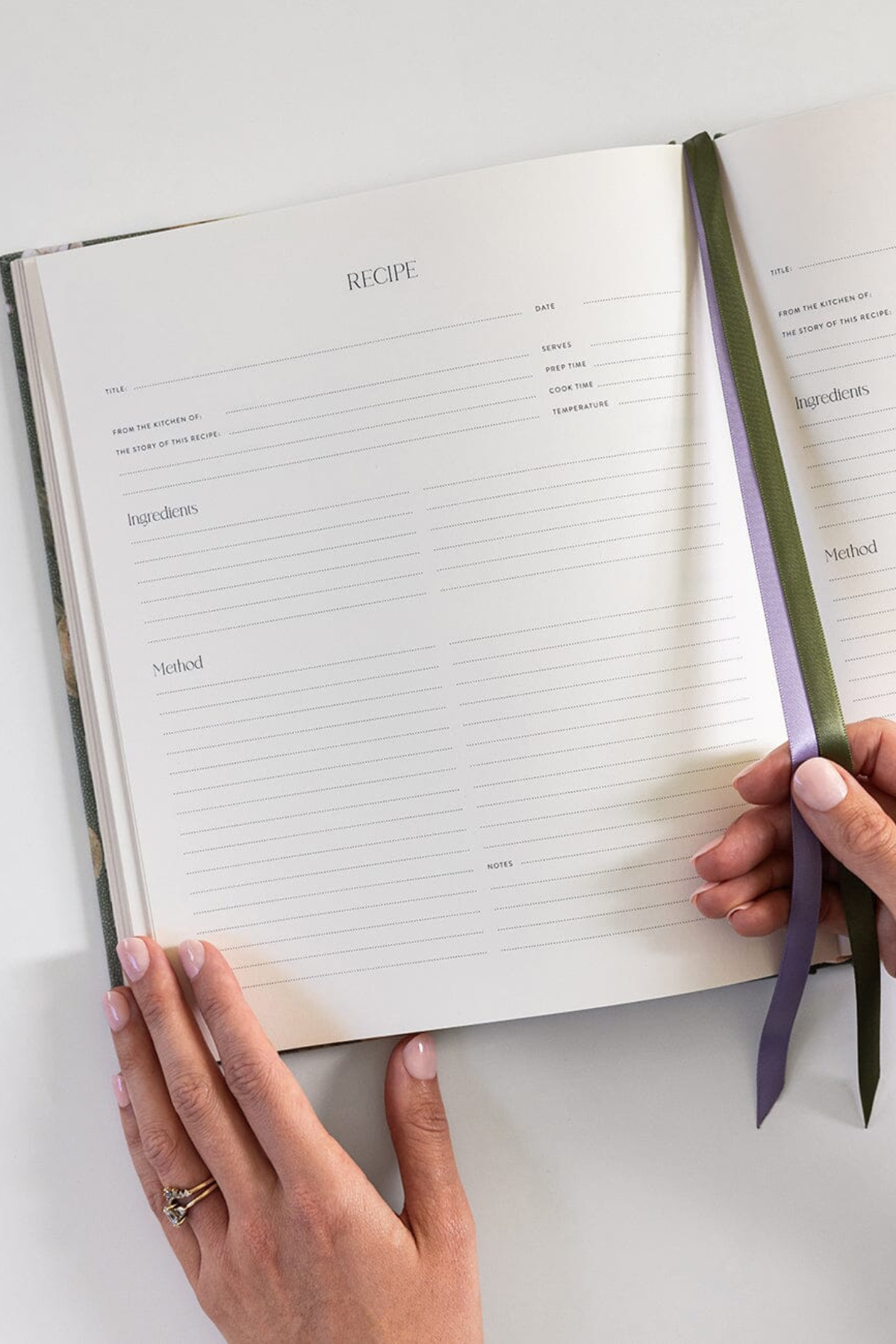 Create, record, and treasure your favourite dishes with our Heirloom Recipe Book — a beautifully designed keepsake for your kitchen and generations to come. Featuring hot foil detailing on the cover, gold gilded edges, and two satin ribbon markers, this linen-bound book is as timeless as the recipes it holds.
