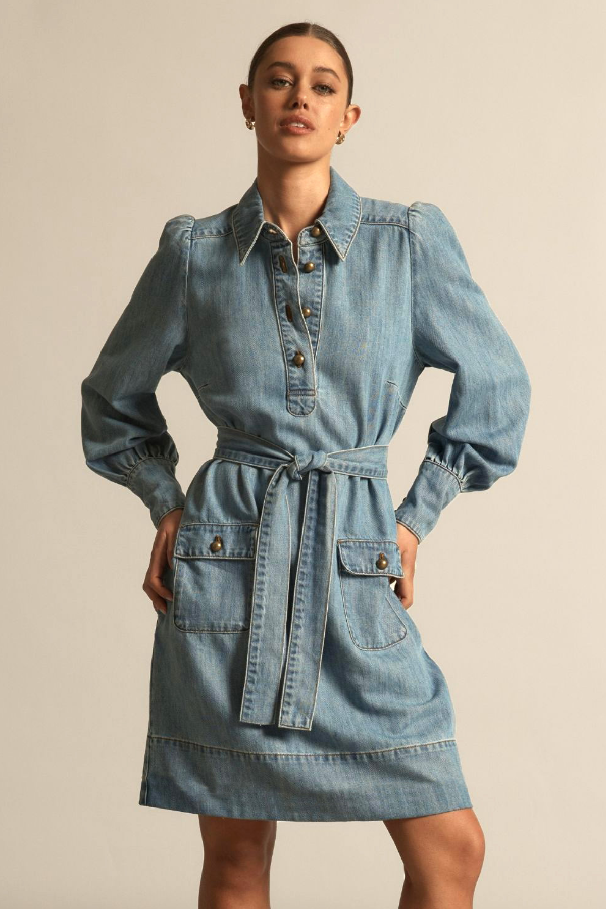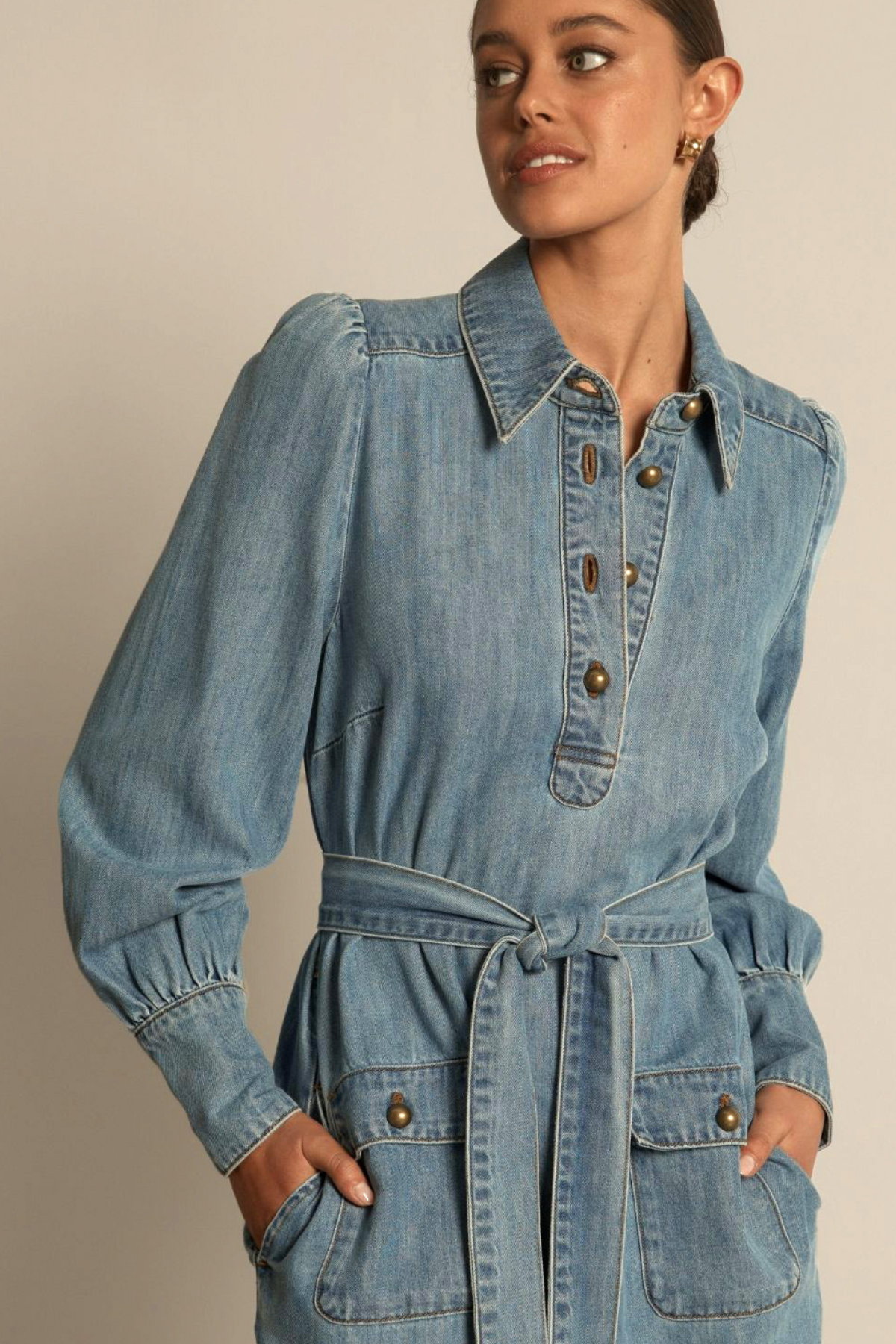 Matching self-tie belt to shape the silhouette with ease