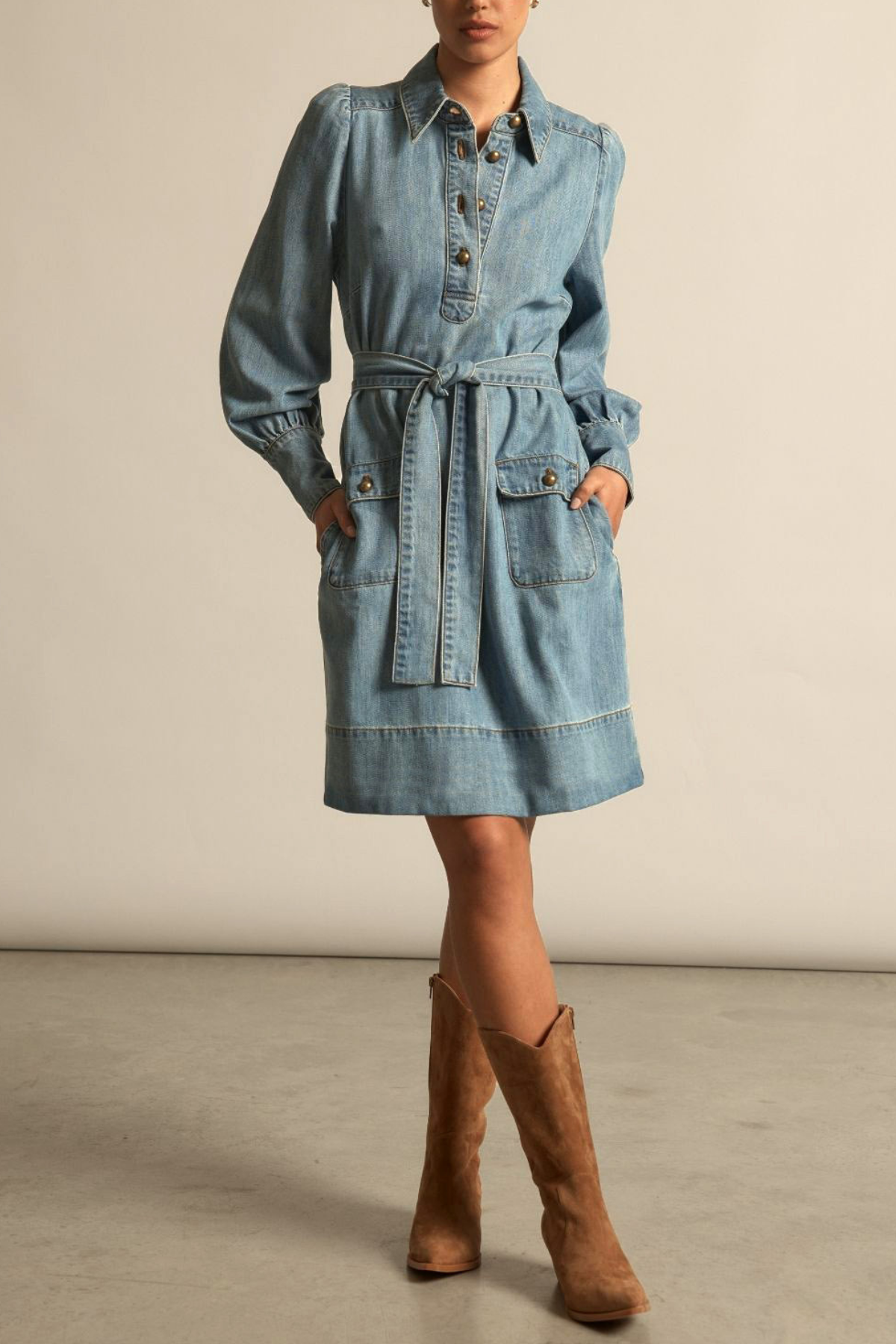 An elegant, versatile piece designed for everyday wear. Style it belted for a defined, polished look, or wear it loosely with boots or flats for relaxed refinement. Works beautifully layered under jackets and knits as the seasons shift, making it an effortless option from workday to weekend. True to size with a softly structured fit.