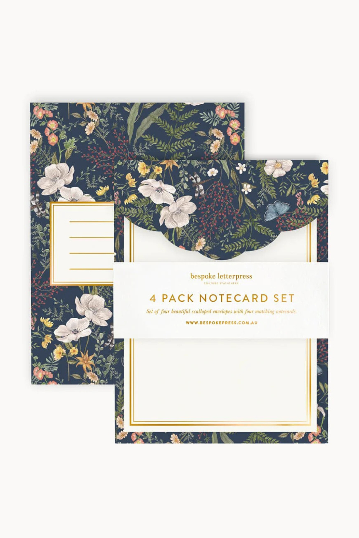 - Set includes 4 matching notecards and 4 scalloped envelopes