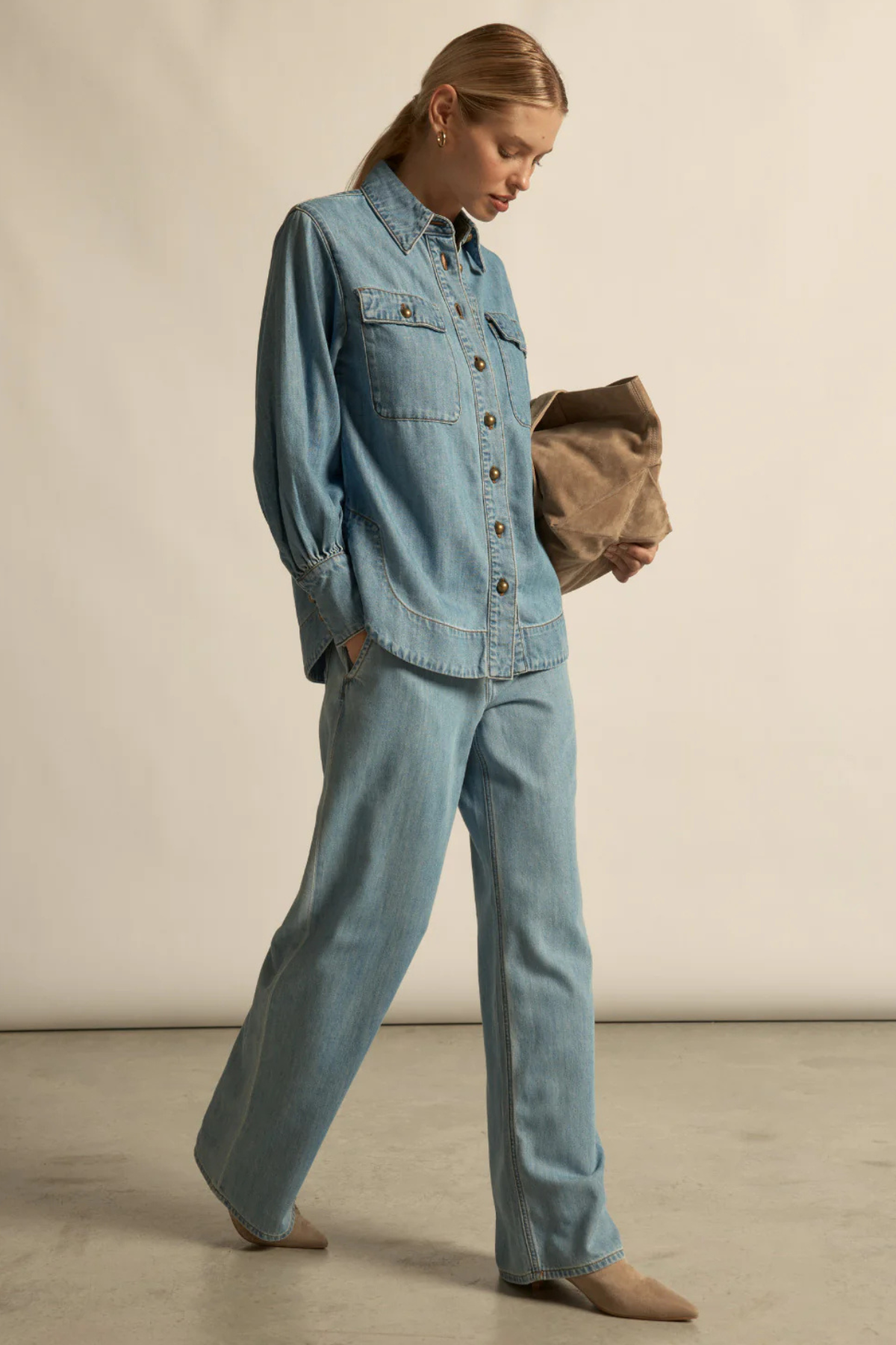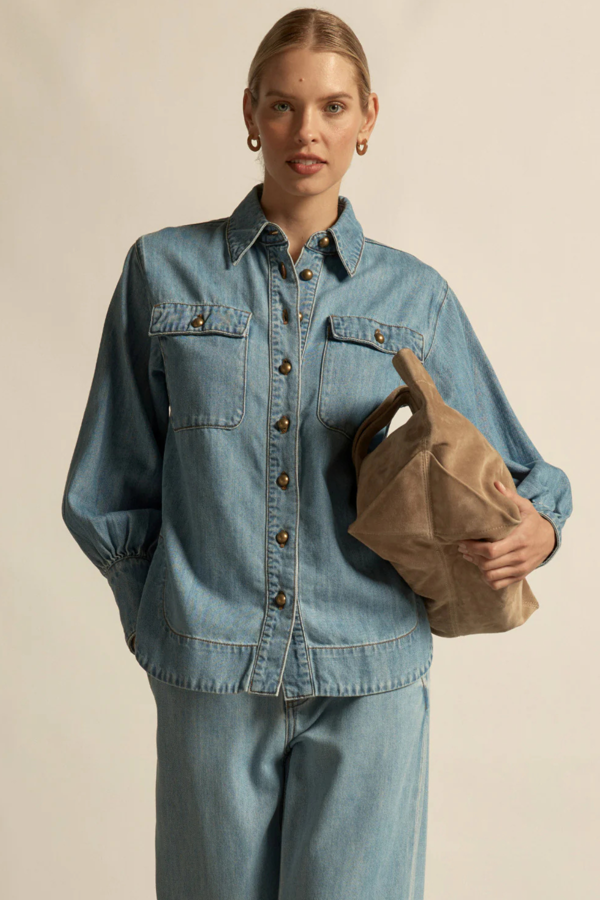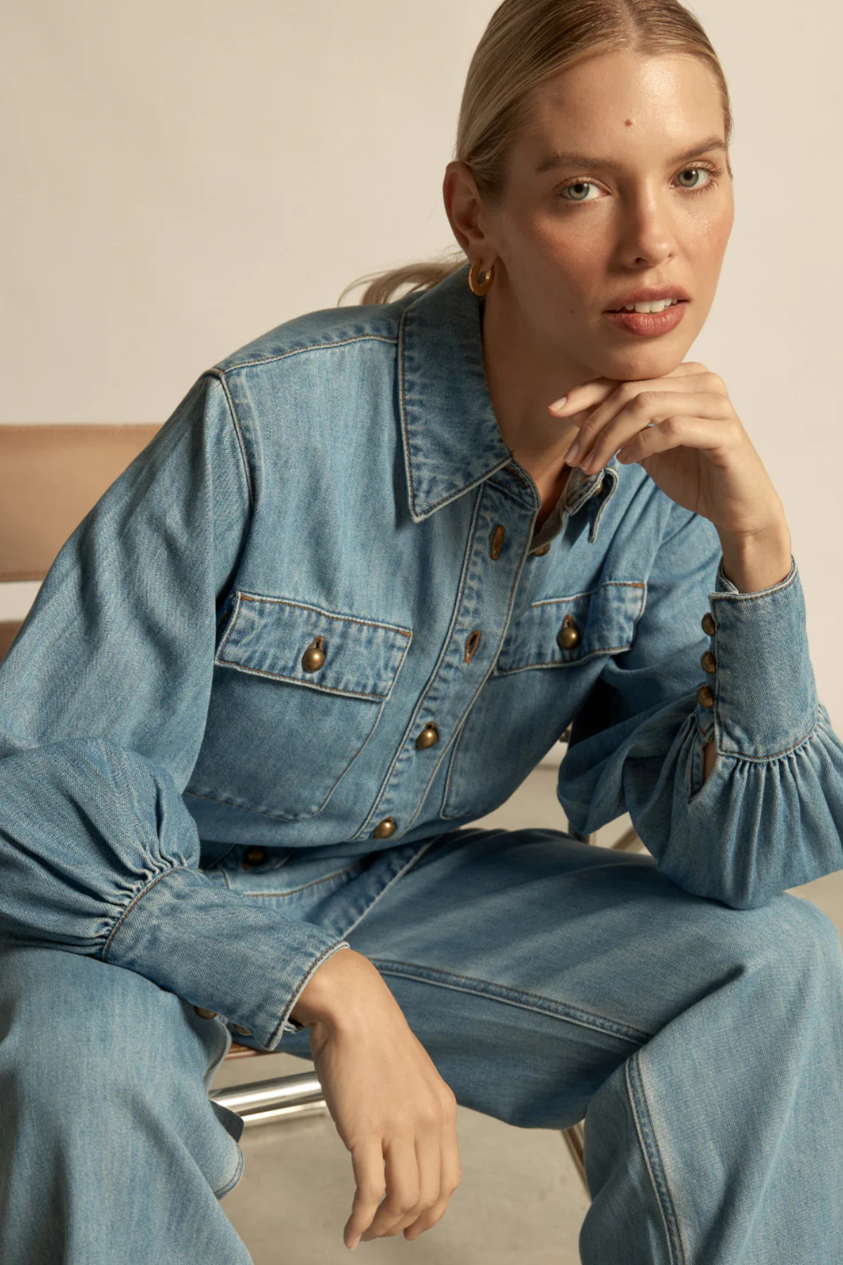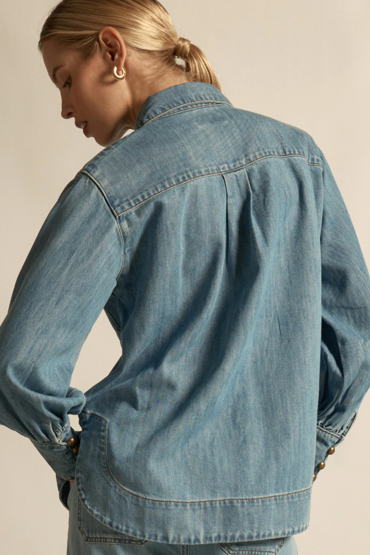 Longline denim shirt with a relaxed yet sophisticated silhouette