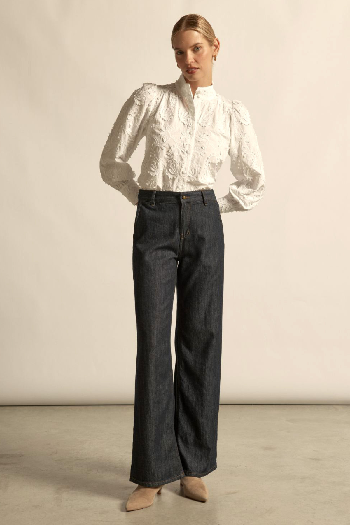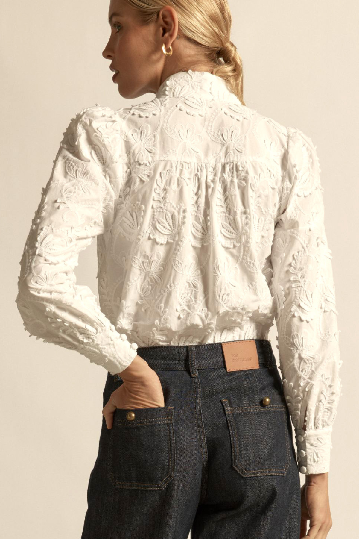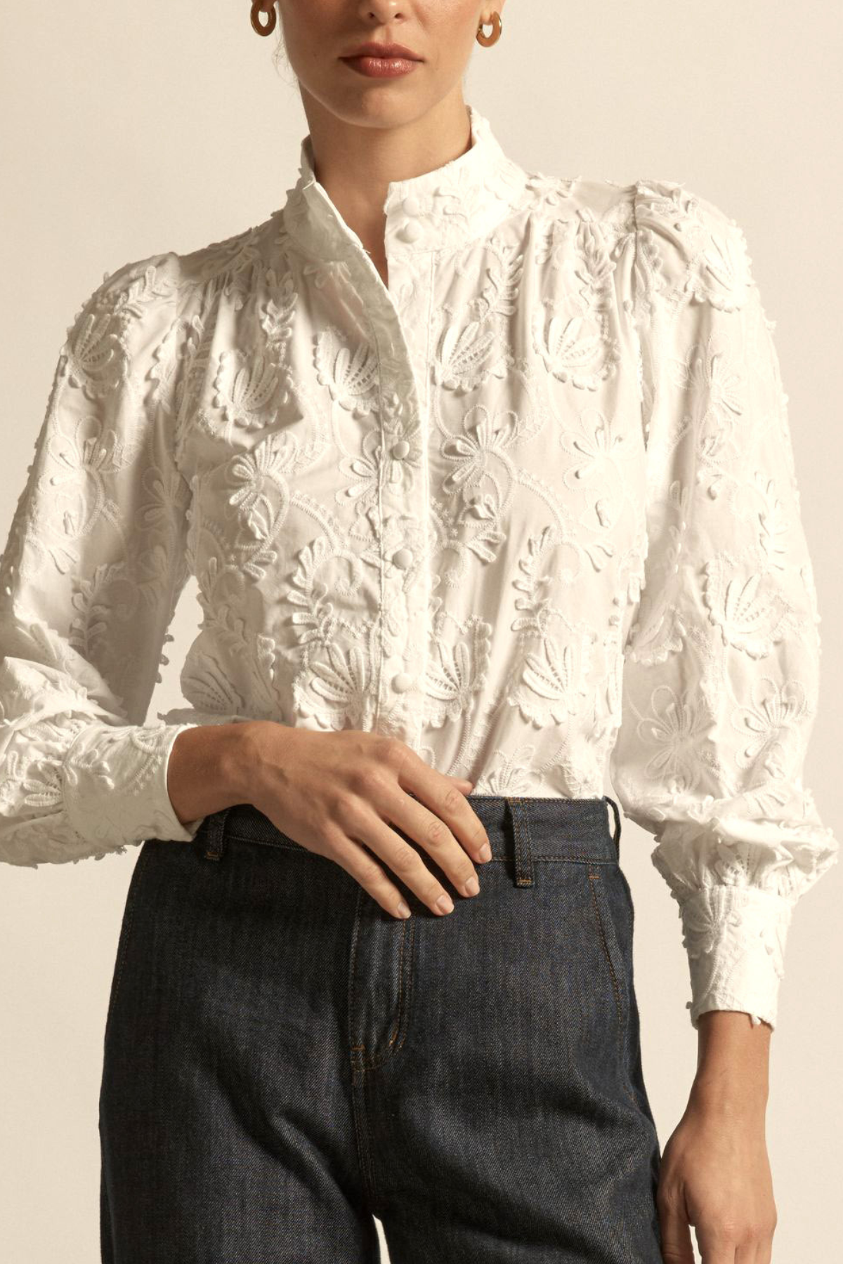 Full-length sleeves finished with a wide cuff that mirrors the collar
