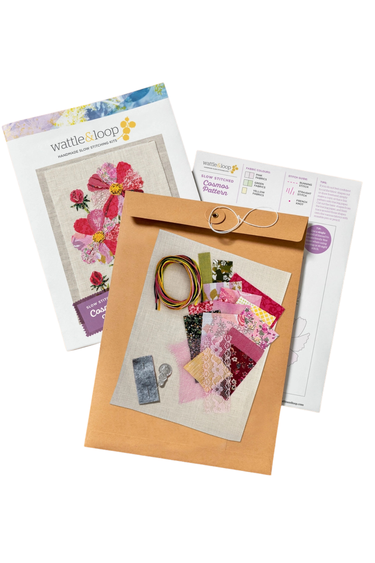 The Cosmos Slow Stitching Kit is a joyful, tactile project designed to bring creativity and calm into your everyday. Inspired by the vibrant, daisy-like cosmos flower — a symbol of balance, harmony and joy — this kit invites you to slow down and create something truly special by hand.