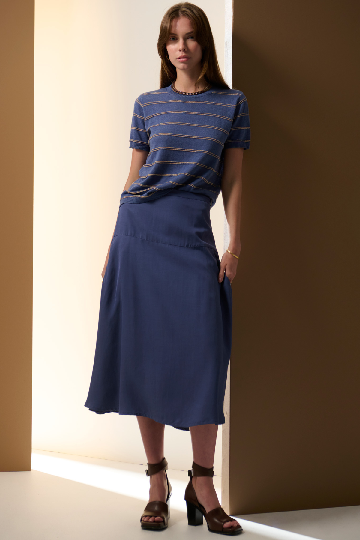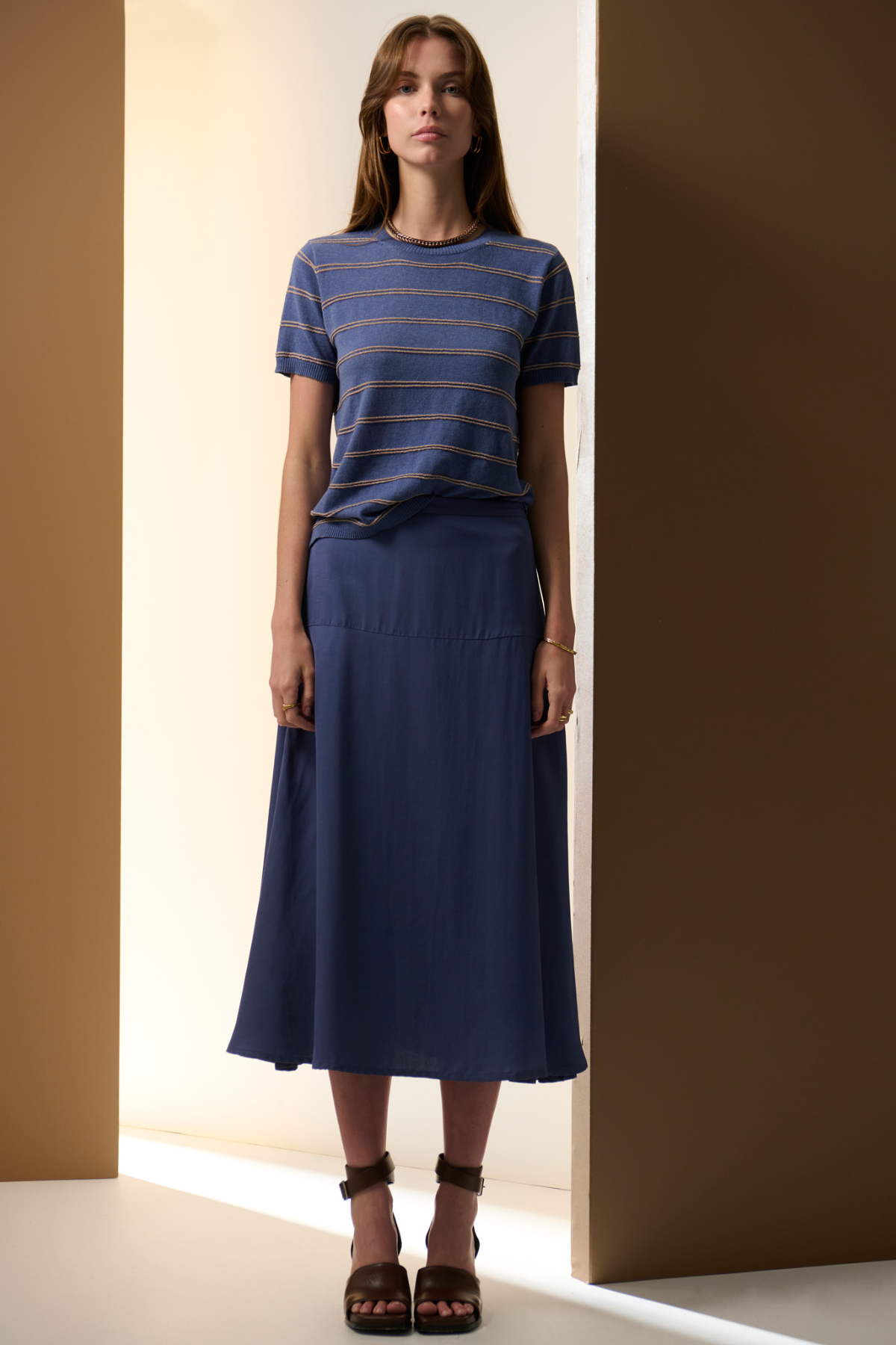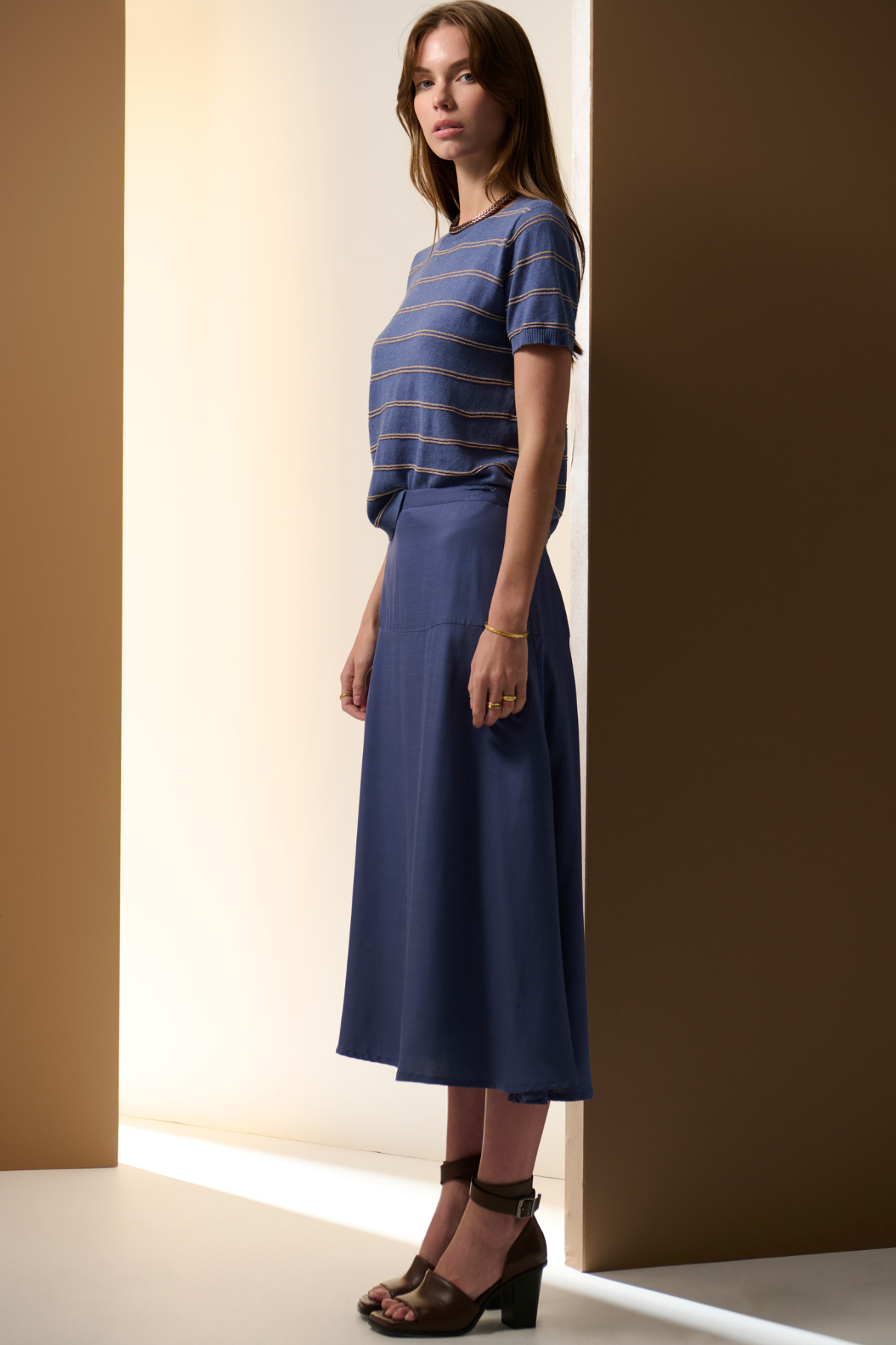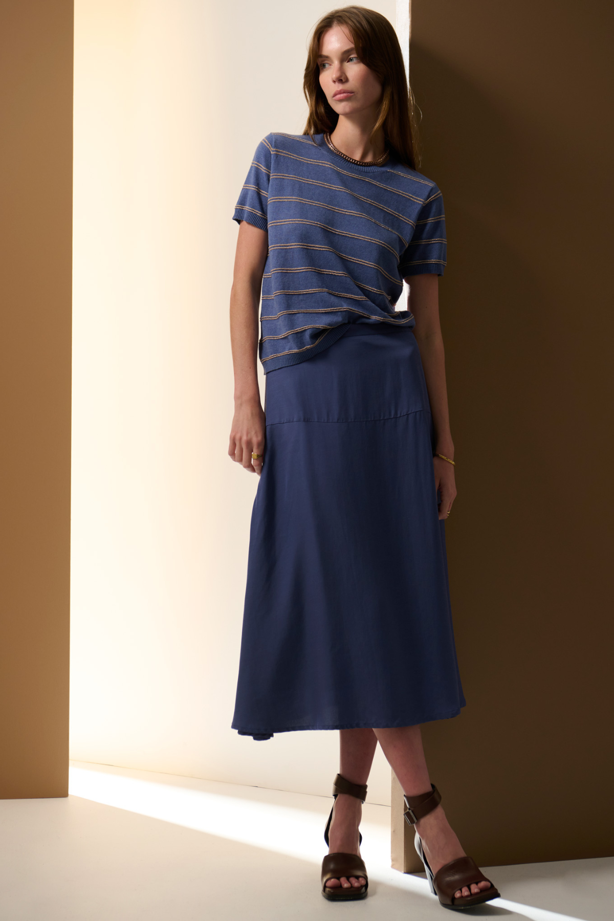 We love the easy, elevated feel of the Sable Stripe Knit Tee. A classic knit tee with a subtle hint of sparkle, this is the kind of piece that quietly lifts your everyday without trying too hard.