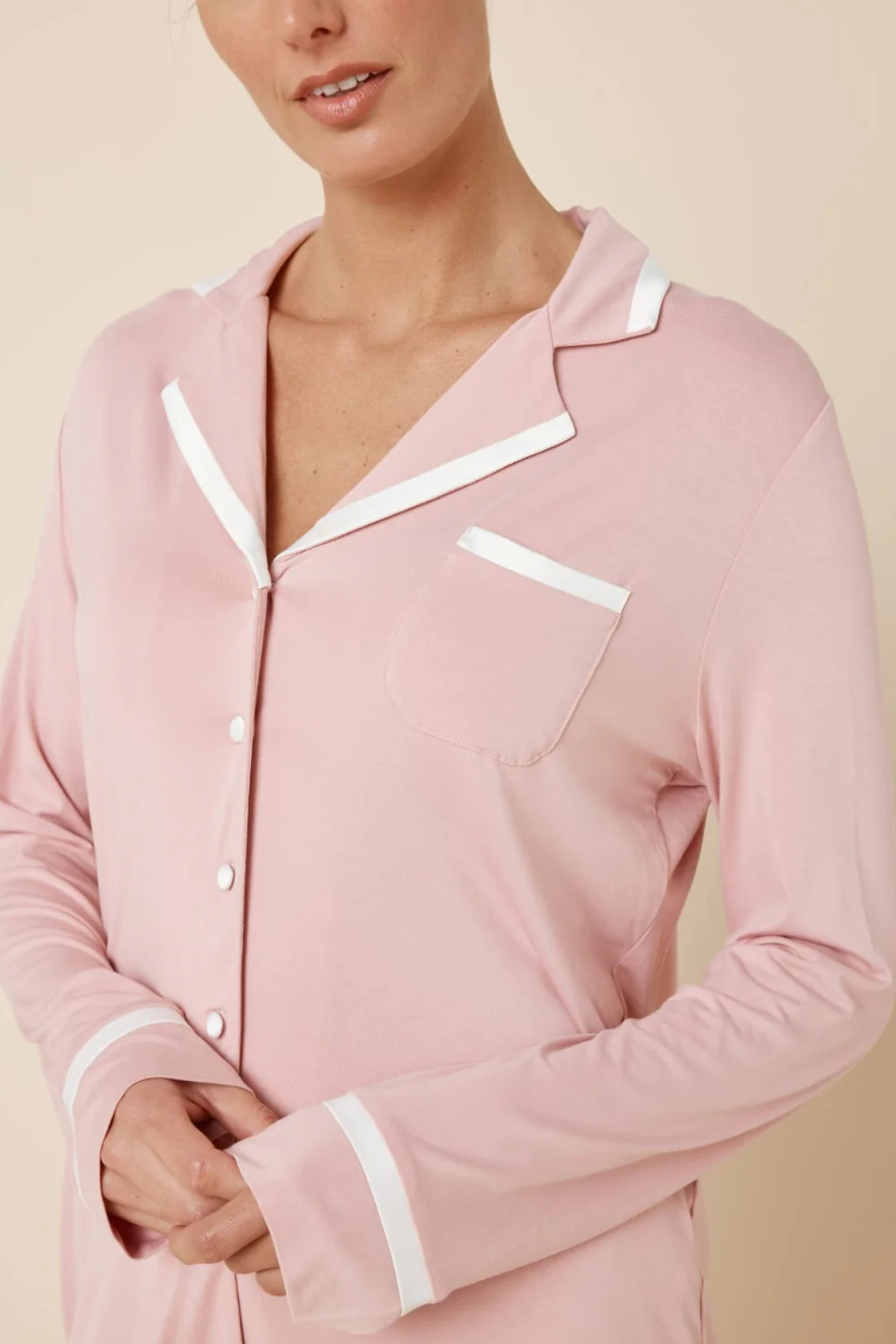 Elevated and timeless, the Grace PJ Set in pink is crafted from our signature bamboo blend for a beautifully soft drape and all-year-round comfort. Designed with classic contrast piping and a relaxed silhouette, it’s polished enough for slow mornings and comfortable enough for restful sleep.