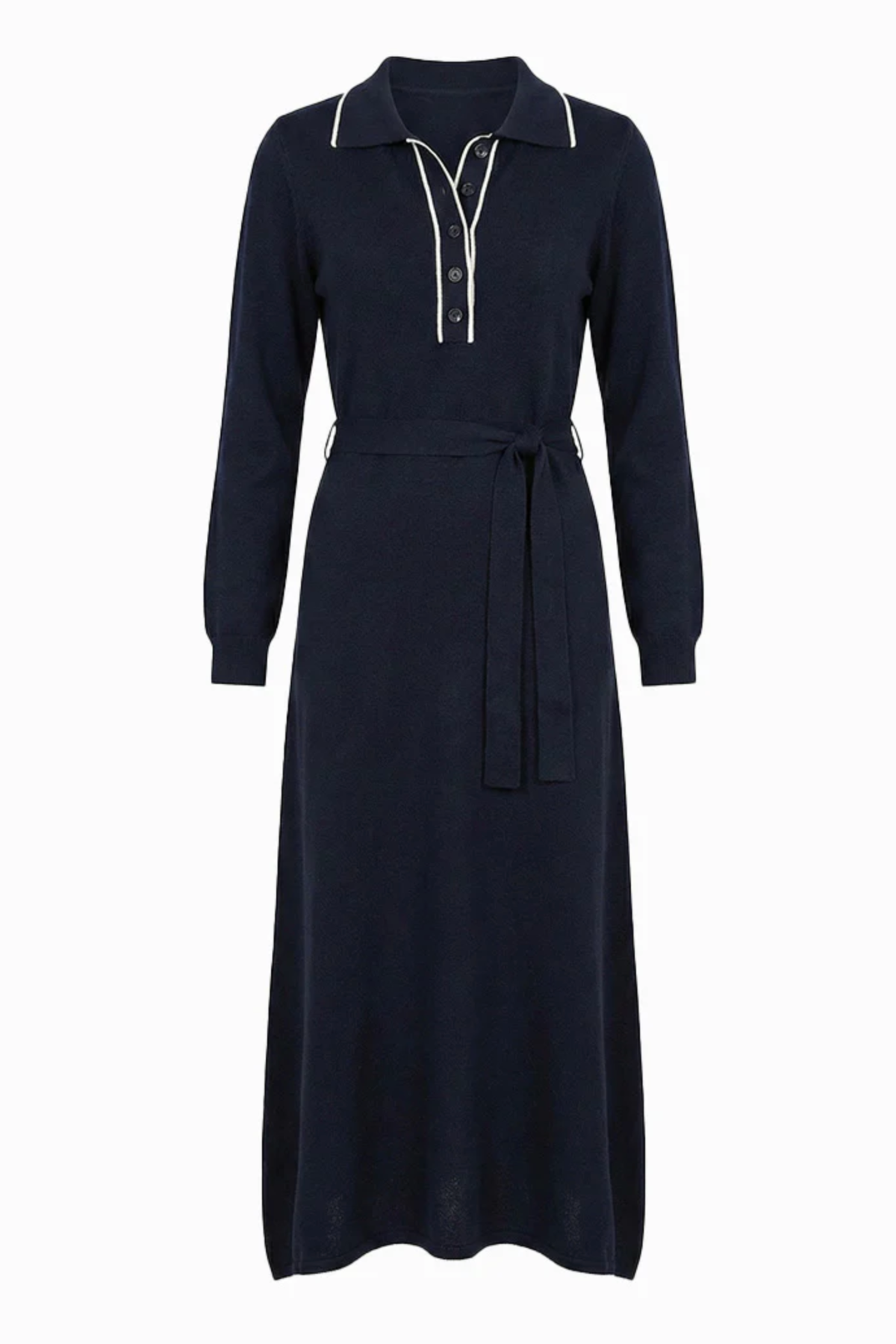 The Ellena Knit Dress is crafted from a soft cotton cashmere blend that feels light, smooth and comfortable on the skin. Designed with a clean button through front and contrast trim, it delivers a polished look that is easy to wear and easy to style.