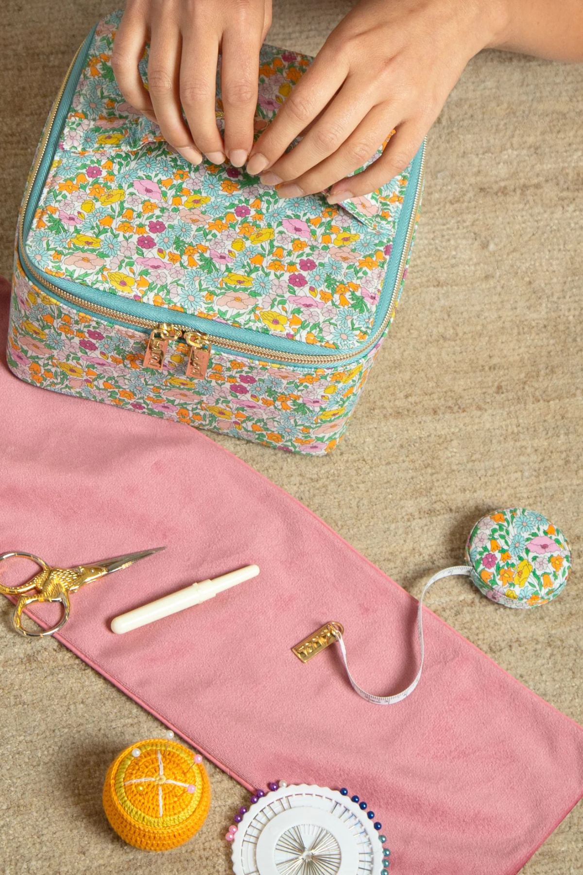 The Liberty Measuring Tape in Poppy brings playful colour to your sewing kit. Covered in Liberty’s signature Tana Lawn™ cotton and finished with a gold Tonic tab, it elevates an everyday essential into something truly special. The hidden push-button retraction ensures the 150cm tape rolls back smoothly without tangles, making it as functional as it is beautiful.